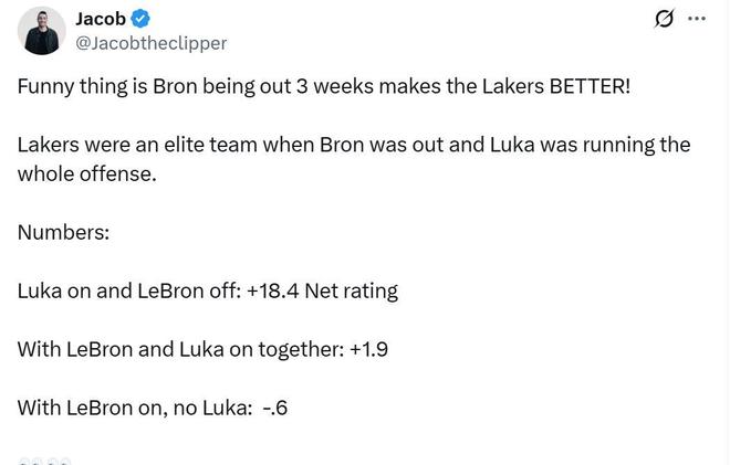 唯一的好消息是詹姆斯缺席的情况下,另外两名持球手里夫斯与东契奇将获得更多证明自己的机会,前者正值合同年希望在明夏得到一份大合同,后者在休赛期大幅瘦身。
